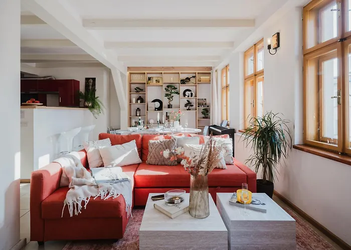 Ubicado a poco más de 5 minutos a pie de Národní třída estación de metro, este apartamento de 112 m², Prague Days - Attic Maisonette With Netflix And Workspace In New Town, está al lado de la Casa Danzante.